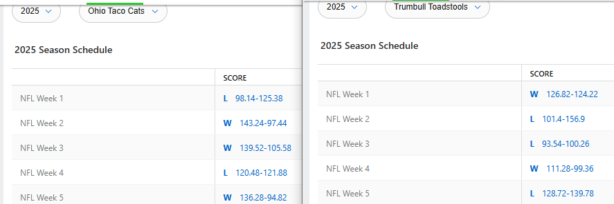 rofl i've literally split games every week so far between the two fantasy leagues.